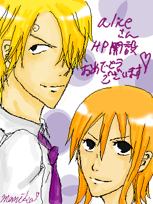 戻ってきました、今晩は!! えーテストは多分ほとんど赤点です☆苦笑 単純に、今回も勉強しませんでしたからねー 反省したいと思います; そして和樹ツアー、またもや惨敗。 これでもうあとは一般? 一般は無理っていうのは、百も承知なんですがね。。。 あああ悔しいなあ(ノд<。)゜。 和樹に会いたかった・・・あの歌が聞きたい。 野音から数えると、5回も和樹チケットにフラれています; そういえば、朝から和樹には笑かしてもらいました。笑 私は0時と朝、和樹のHPをチェックしているんですよー あのブログはいったい何を狙ってるの?笑 凄い面白かったです(・ω・) ギターは格好良かったよっ あ、そして上のは、久々にパソコンで描いた絵になりますね。 テスト中なのにも関わらず、以前お世話になっていた素敵ワンピ絵師さん、aliceさんがHPを開設されたとのことで、急いで描いて、投下してきました! 一応・・・ナミとサンジ。ワンピ絵も、ペンタブも久しぶり過ぎて、全然描けませんでした(´Д`)版権自体ご無沙汰ですしね。 aliceさん宅です→ http://www.geocities.jp/alice_micco/index.html リンクも貼らせて頂きました☆ なんか書きたいこといっぱいあったのですが・・・ まあ、いいや、今日はこの辺で! テニス40.5巻の感想でも明日は書こうかなー。 とりあえずテスト終わったので、これからはお絵描き三昧です(*^□^*) えーっと、いつのまにか2950HITしていました! 3000HIT踏んだ方はご一報くださいね! へたれですが、何か描かせていただくかもです^^ そうだ! 年賀状交換しませんかっ? 交換又は貰ってくださる、という心優しい方は、1つ下の記事まで!! でゎ! PR |